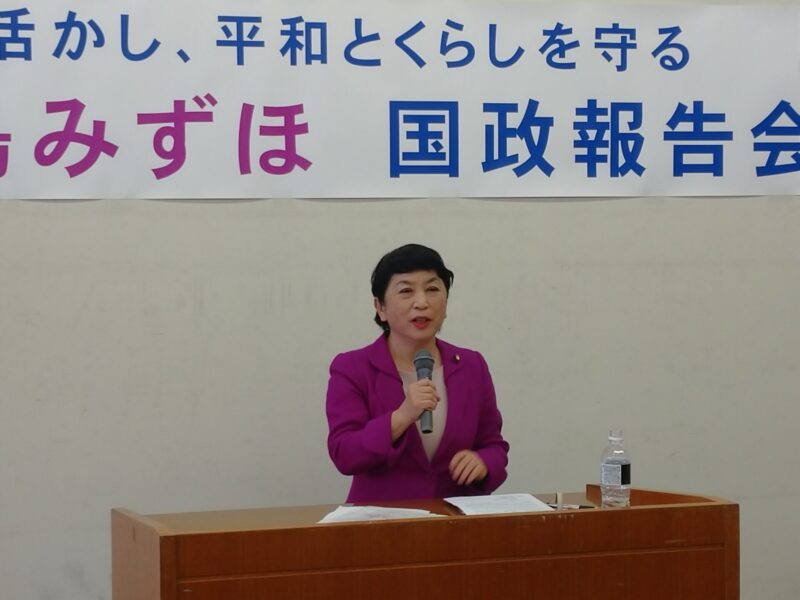 社民党茨城県連合は12月14日、福島みずほ党首を迎え、国政報告会in水戸を県民文化センターで開催しました。